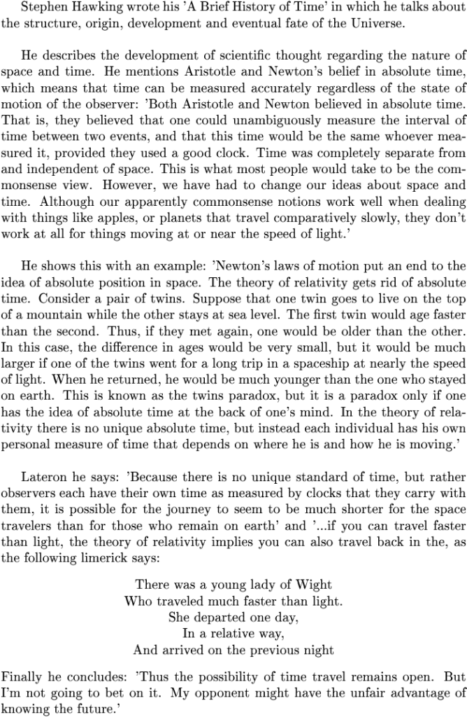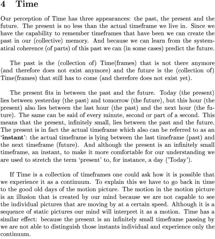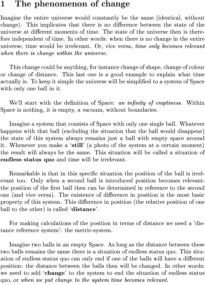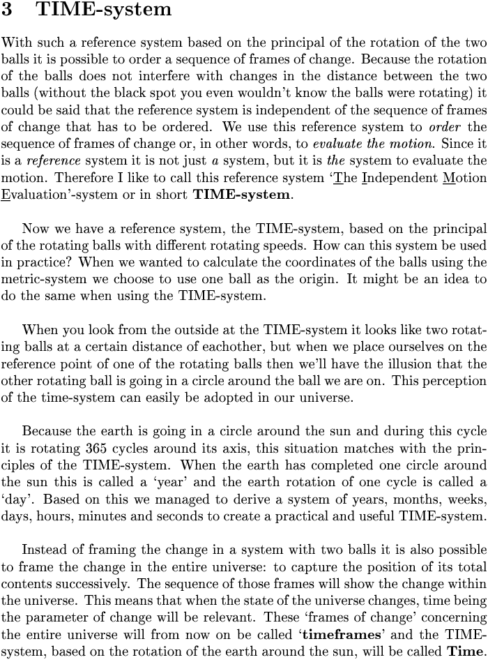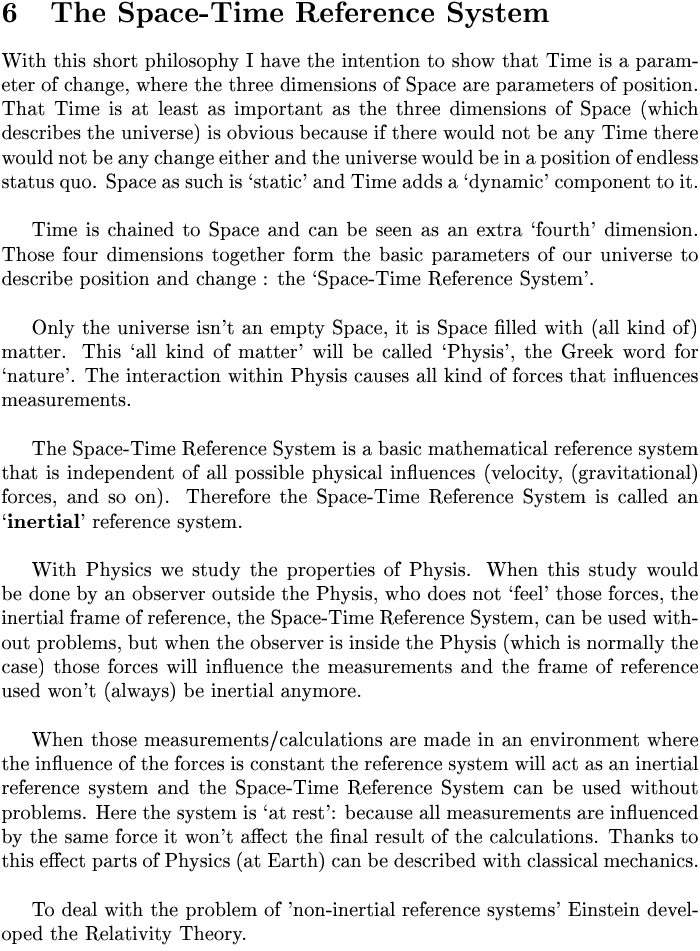 Time A (very) brief philosophy of Time 1 The phenomenon of change 2 An independant reference system 3 TIME-system 4 Time 5 Traveling through Time 6 The Space-Time Reference System 7 The Special Relativity Theory 8 The General Relativity Theory 9 Conclusion Back to Topics
