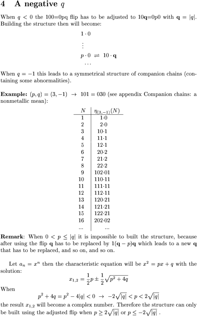 The general definition of the base 100=0pq number systems will lead to the general 100=0pq flip. When 100=011, as we have seen, the structure of the number system is fully based on Lucas chains. When p increases the structure of companion chains can still be recognized. When q also increases the stucture of companion chains will become less visible, although the companion sequence remains the basic structure.