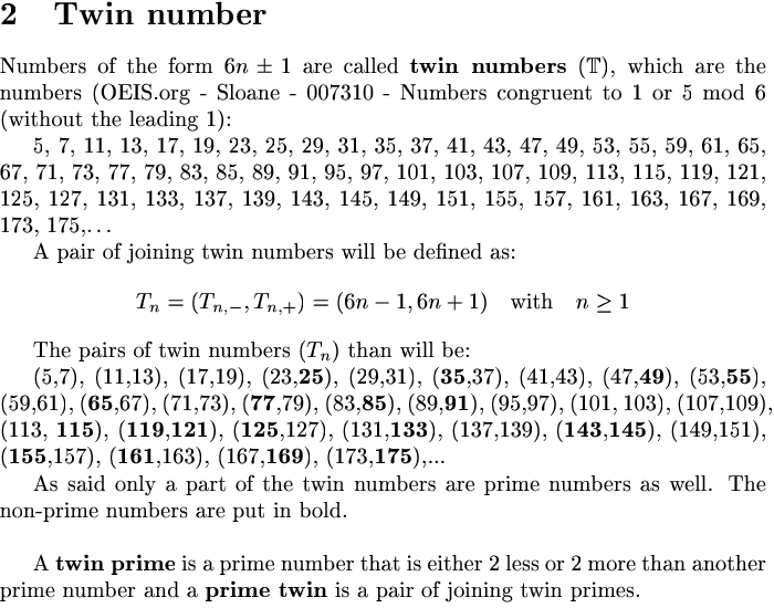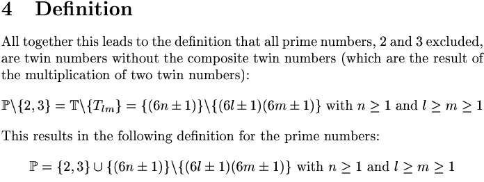 The prime numbers are a very peculiar set of natural numbers. There is no mathematical formula that descibes these numbers. The best way to find them is to use the well known ‘sieve of Erathosthenes’: an elemination process that results in the prime numbers. A specific property of allmost all prime numbers leads to a definition that resembles the sieve of Erathosthenes.