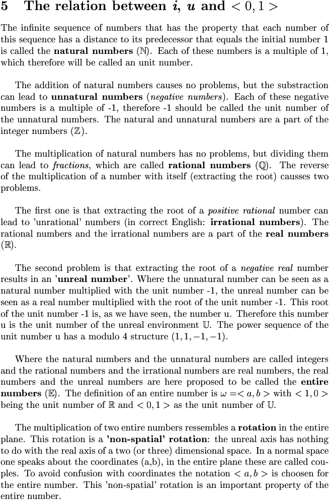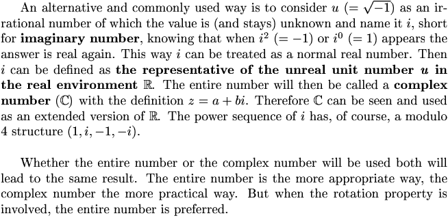 The multiplication of two entire numbers resembles a rotation in the entire plane. This rotation is a ‘non-spatial’ rotation: the unreal axis has nothing to do with the real axis of a two (or three) dimensional space.